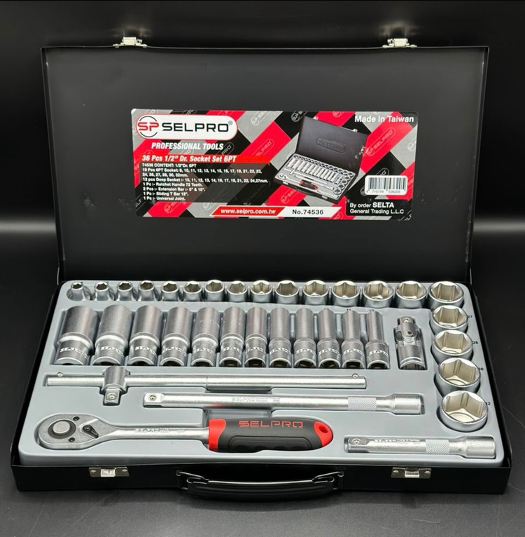 جعبه بکس ۳۶پارچه ۱/۲درایو سایز ۸تا۳۲کوتاه وبلند برند سلپرو تایوان