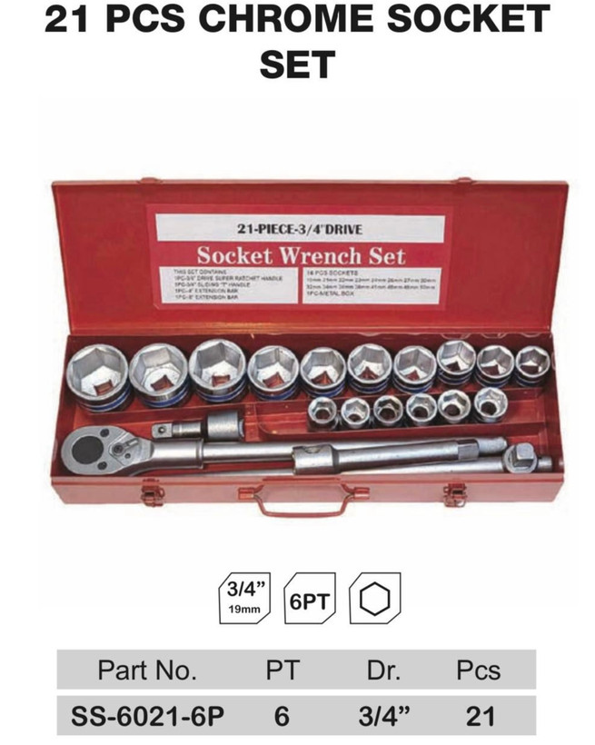 جعبه بکس ۳/۴درایو۲۱پارچه ۶پر سایز ۱۹تا۵۰برنداس جی تی